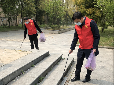 在缽池小區,控股公司志愿者們三人一組、五人一群,身穿志愿者馬甲,手拿清潔工具,對綠化帶內的煙頭、白色垃圾進行清理,用行動引導更多的群眾自覺參與到文明城市創建中來,做到愛護環境,人人有責,共同維護美好的生活環境。